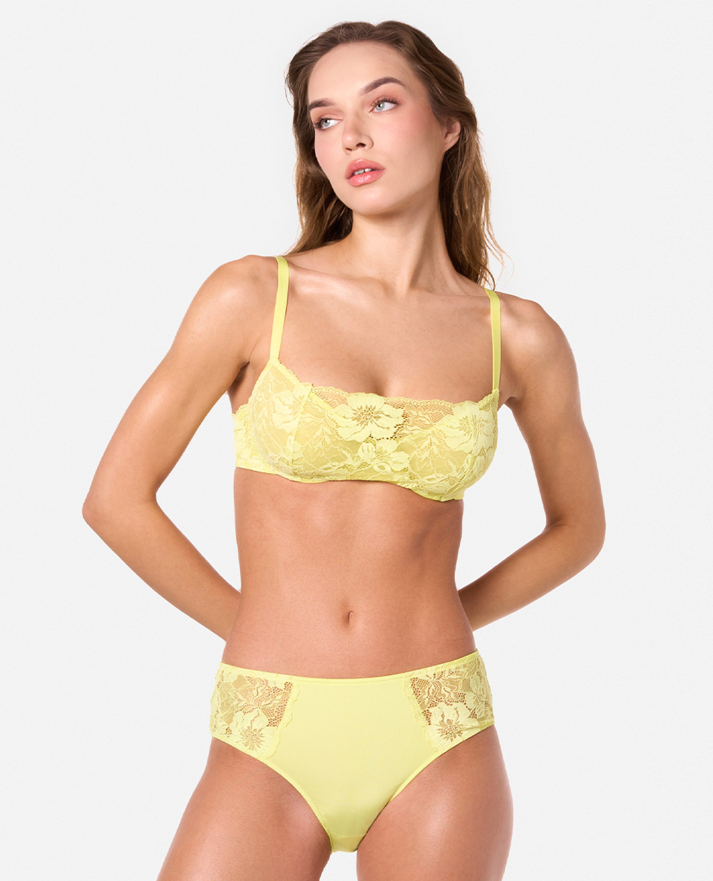 Die Wahl für diejenigen, die Komfort und ästhetisches Erscheinungsbild suchen. Ein mittelhoher Slip mit Baumwoll-Mesh-Teil und feinen Spitzen-Details. Eine Dessous-Alternative, die durch ihre bequeme und flexible Struktur auffällt. Das elegante Spitzen-Detail verleiht einen stilvollen Touch. Erhältlich in den Farben Schwarz und Citron.